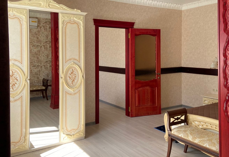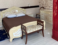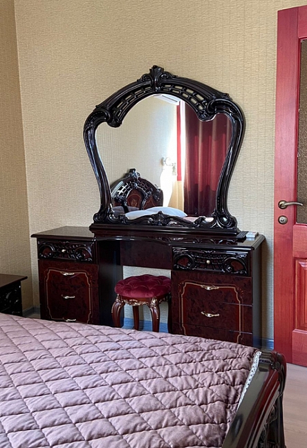 зеркало, кровать двуспальная, прикроватные тумбочки, стол, стул, шкаф