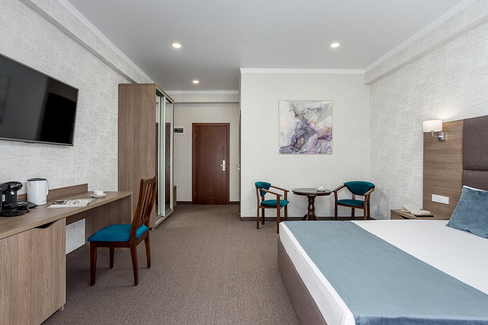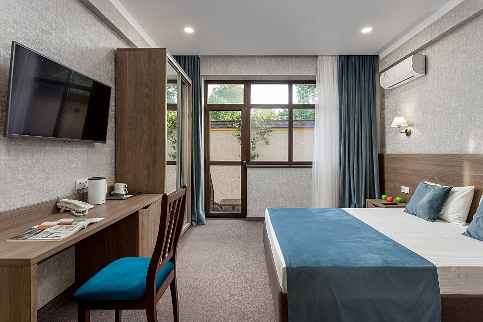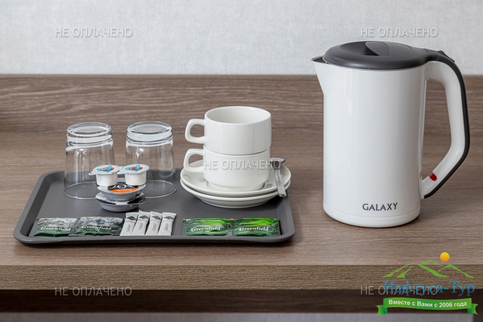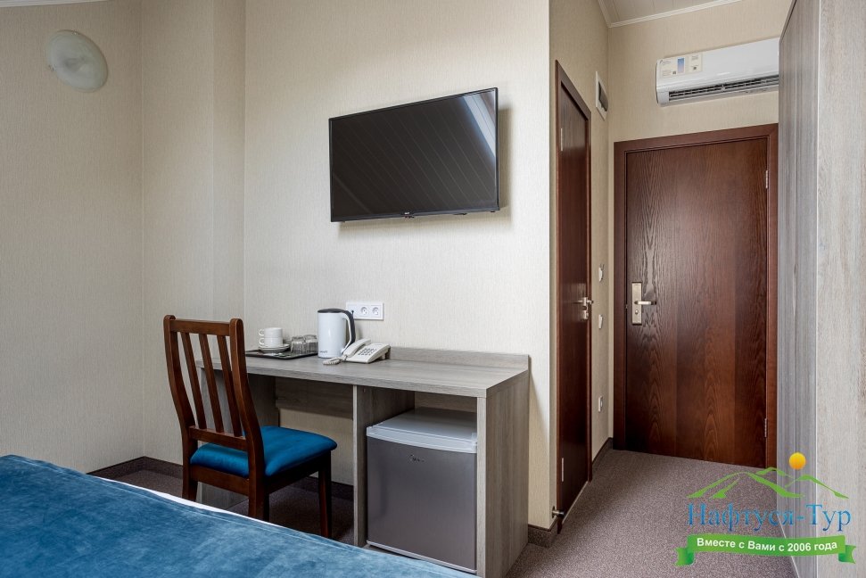 кондиционер, мини-холодильник, телевизор ЖК, телефон, чайный набор посуды, электрочайник
