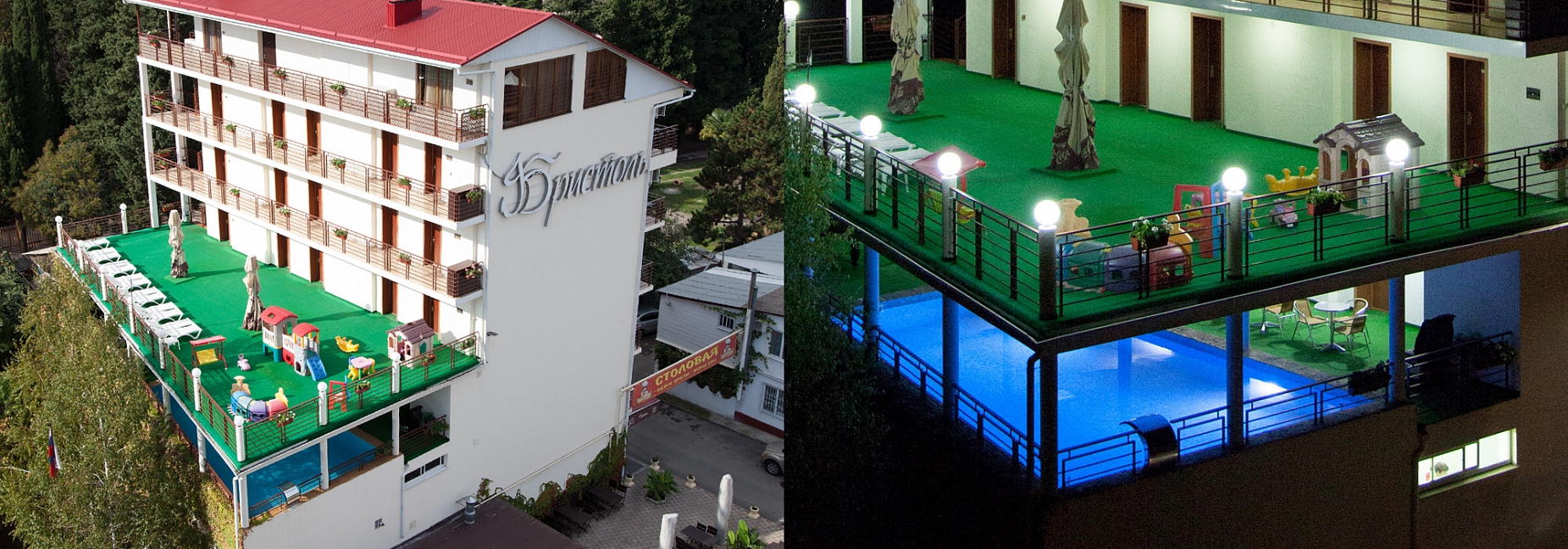 Современный отель «Бристоль» высокого уровня комфортности был открыт 1 августа 2008 года. За это время тысячи гостей насладились отдыхом на живописном черноморском побережье курорта Лазаревское.