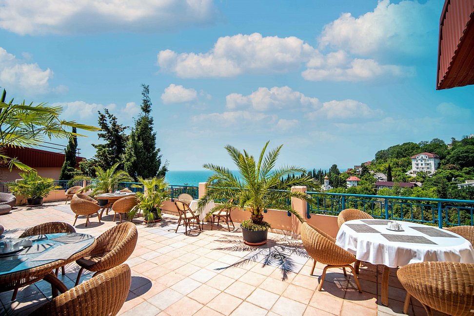 Уютное размещение: Гостиничный комплекс "Одиссея" предлагает комфортабельные номера с видом на море и всем необходимым для приятного проживания.