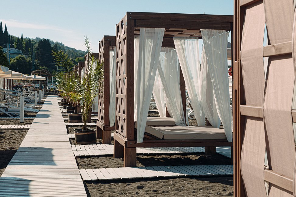 - пляж санатория «Одиссея» считается одним из лучших на Лазаревском взморье