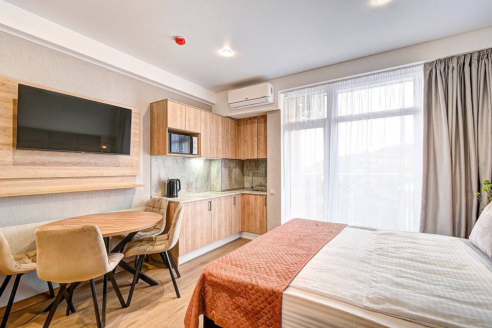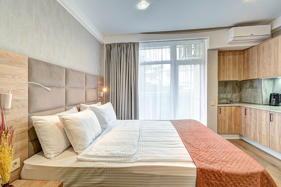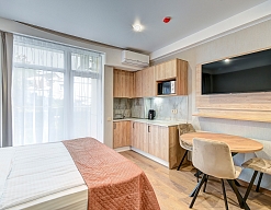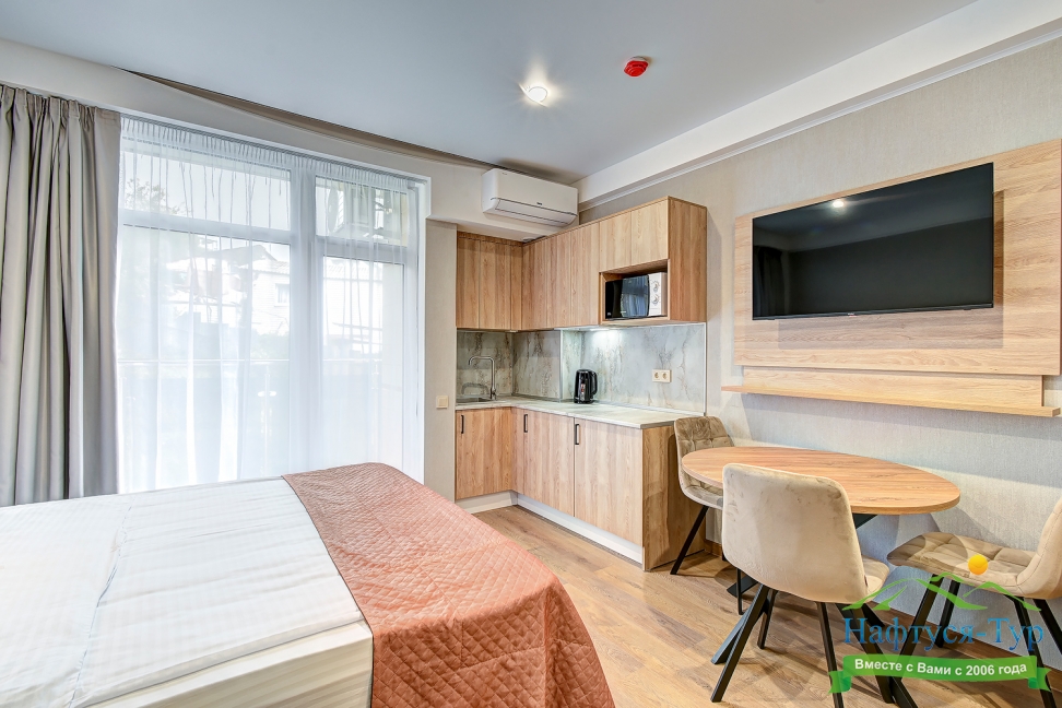 Расположение: 700 м до моря, 750 м до ж/д вокзала, 50 км до аэропорта Адлер