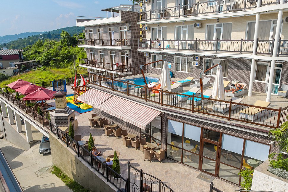 Поездом до ж/д вокзала г. Сочи, далее на рейсовом автобусе №75 до остановки «Аквапарк АкваЛоо», далее пройти пешком 203 м до отеля.