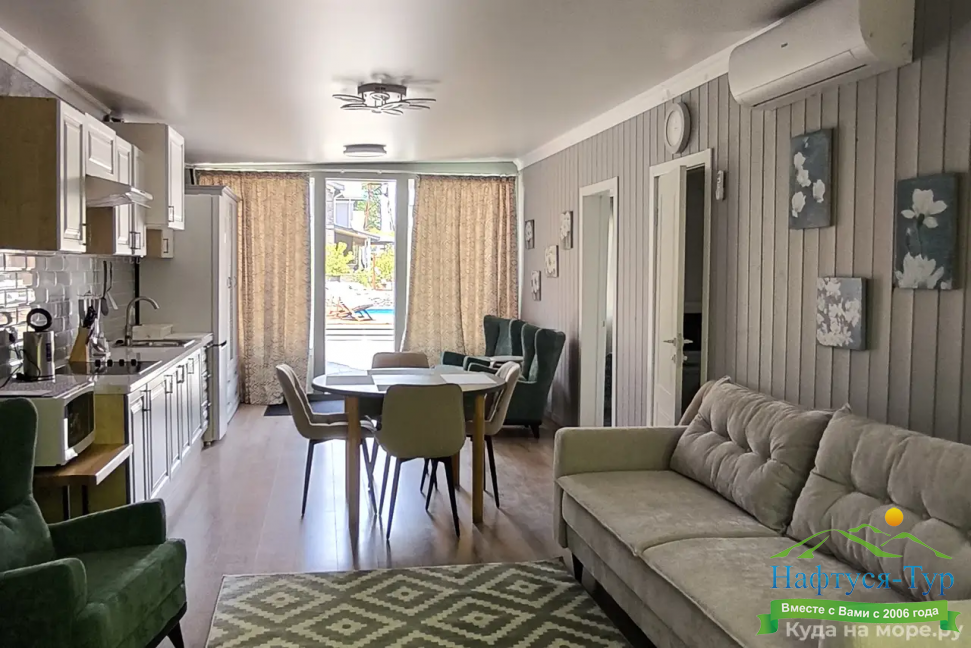 Расположение: 900 м до моря, 810 м до ж/д вокзала ст. Горный Воздух; 3,6 км - ст. Лоо, 50 км до аэропорта Адлер