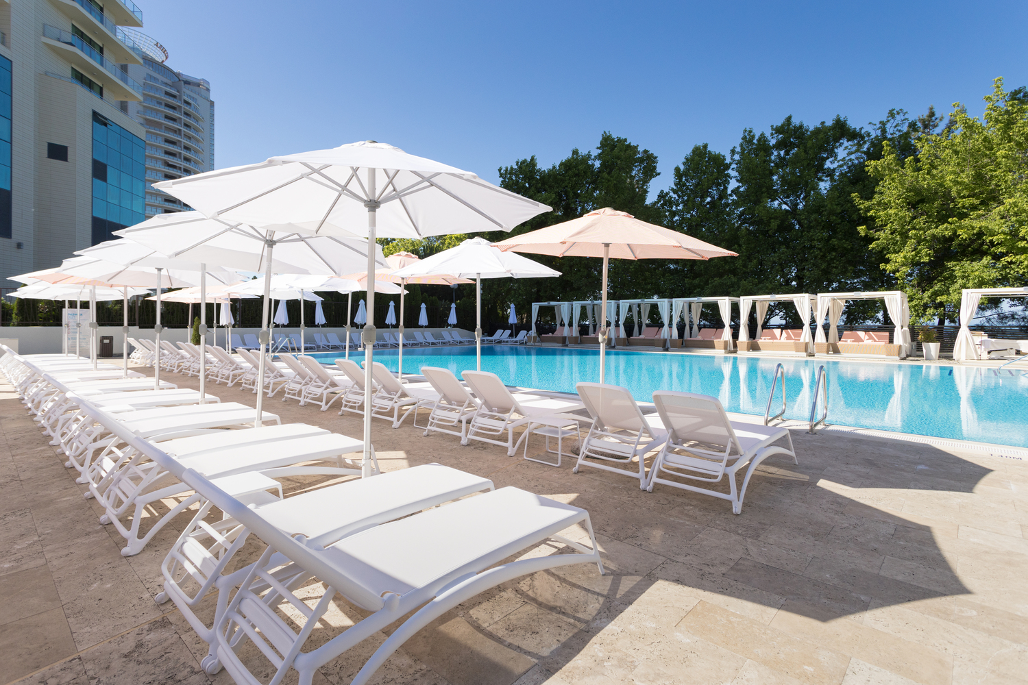 Сочинский ГРАНД-ОТЕЛЬ «ЖЕМЧУЖИНА» – это прямое воплощение всех представлений о комфортабельном и восхитительном отдыхе у моря в самом центре главного российского курортного города! Корпуса и территория гостиницы находятся в центральной части Сочи, в первой береговой линии. Номера для гостей в «Жемчужине» расположены в 19-ти этажном корпусе. Благодаря этому открывающиеся из окон панорамы Кавказских гор и Черного моря особенно великолепны. Окружает отель уникальная парковая зона с тропическими растениями, в 100 метрах – частный пляж, длина 200 м, это единственный частный пляж среди отелей Краснодарского края. А ещё здесь к вашим услугам два открытых бассейна с морской водой – детский и плавательный.