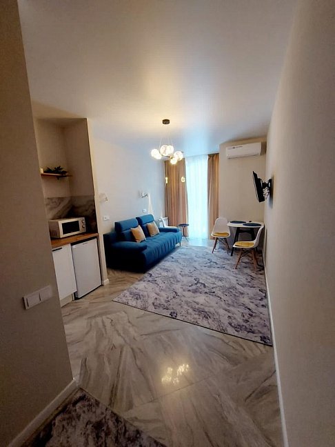 На поезде до жд вокзала Сочи, далее на автобусе №19,22 или на маршрутке №83,87,95,98 до остановки «Кинотеатр Аэлита», затем пройти 1,56 км до апартаментов.
