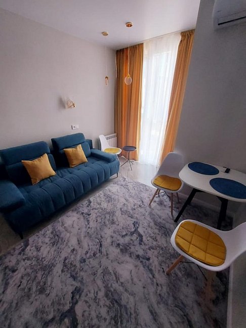 На самолете до аэропорта Адлер, далее на автобусе №105,105а,105с до остановки «Санаторий Металлург», далее пройти 320 м и пересадка на автобус №18 до остановки «МФЦ», затем пройти 280 м до апартаментов.