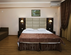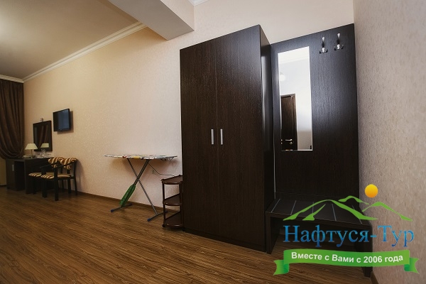Гости могут уютно расположиться в номерах категории "Стандарт", оснащенных мебелью и техникой. На каждом этаже, кроме 2-го, есть терраса с панорамным видом на море и горные окрестности, которая оборудована столиком и стульями.
