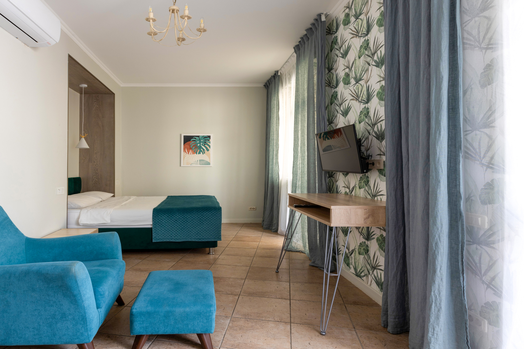 Поездом до ж/д вокзала г. Сочи, далее на маршрутном такси №92 до остановки «Магазин Перекресток», далее пройти 224 м до отеля.