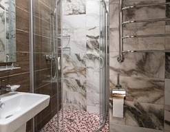 с душевой кабиной, туалетные принадлежности, фен