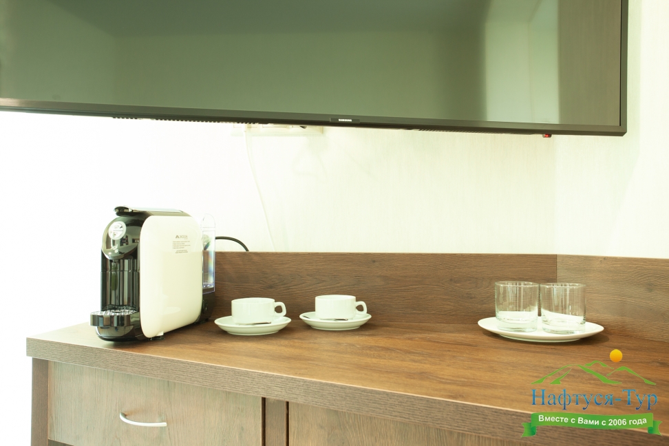 кондиционер, кофемашина, набор посуды, сейф, телевизор, телефон, холодильник