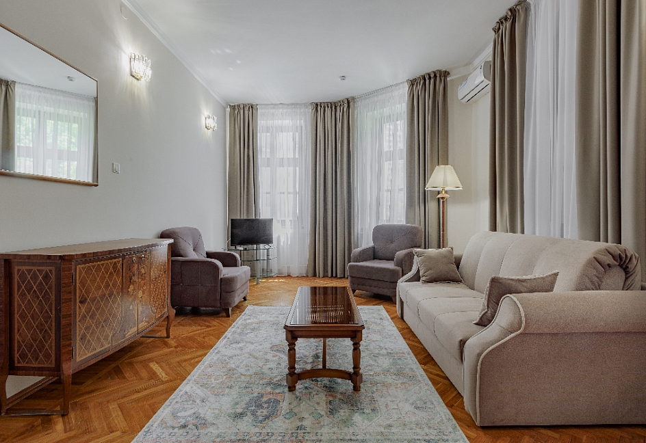 Расположение: Первая линия у моря (50 м до пляжа), 100 м до центра Сочи, 30 км до аэропорта Адлер