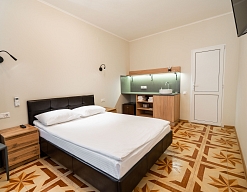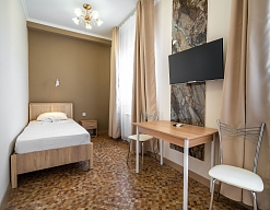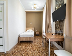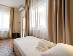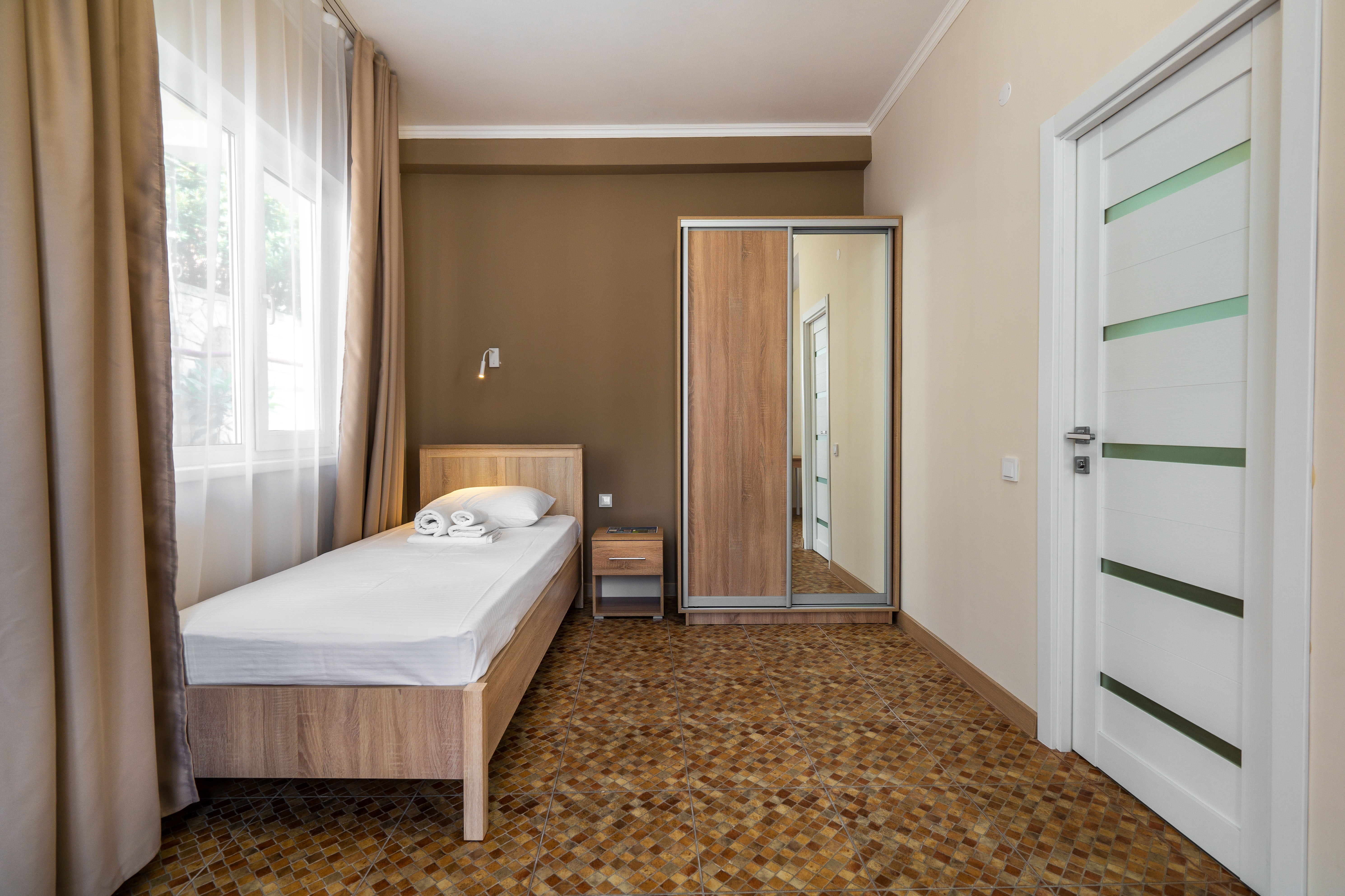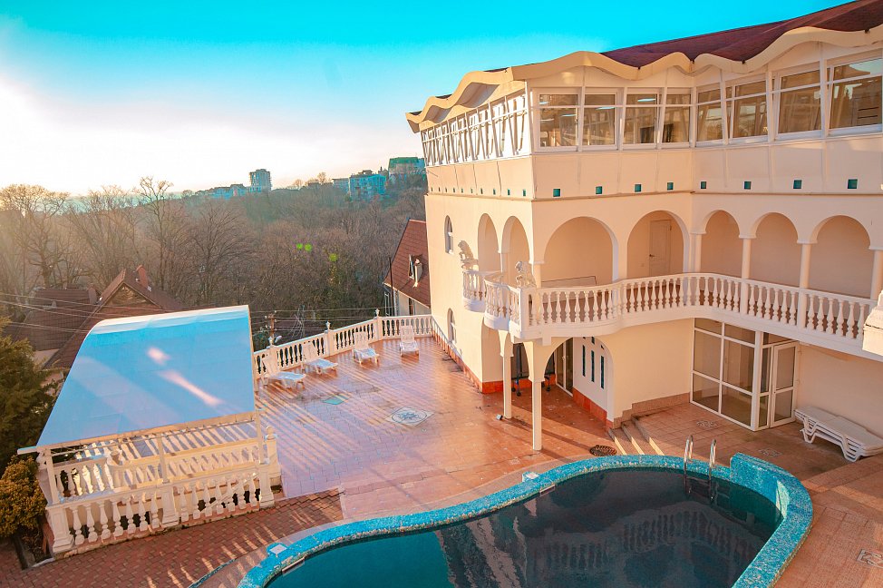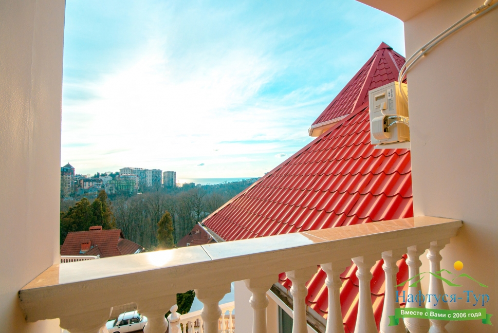 Поездом до ж/д вокзала Сочи, далее на маршрутке №6 до остановки «Калужская улица». Далее пешком 560 м до отеля.