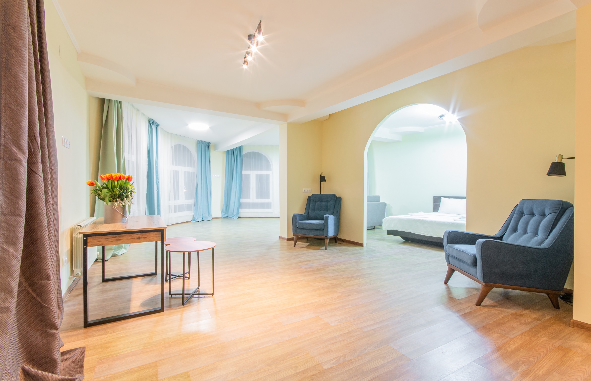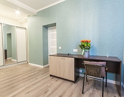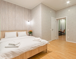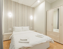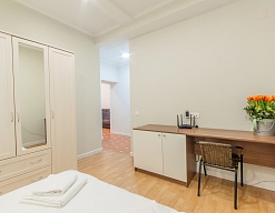 диван раскладной, кровать двуспальная, прикроватные тумбочки, стол, стулья, шкаф-купе