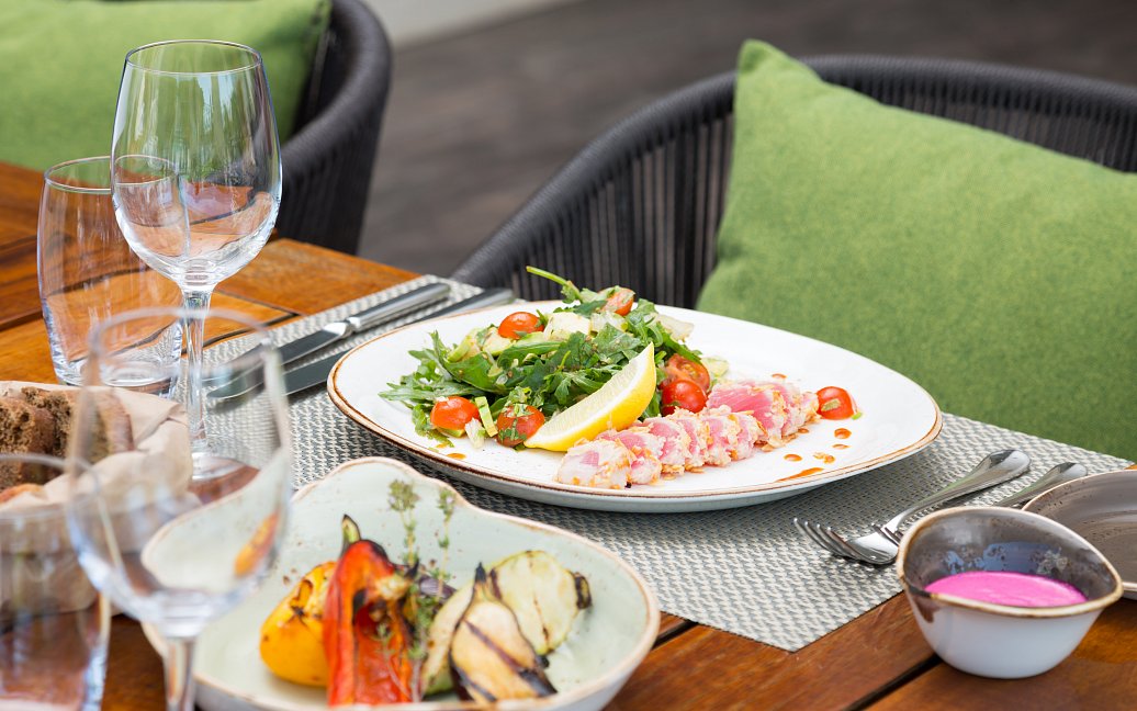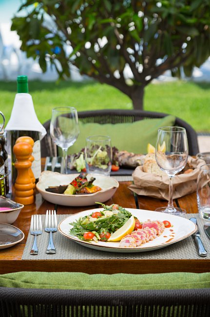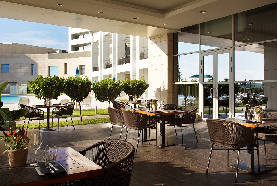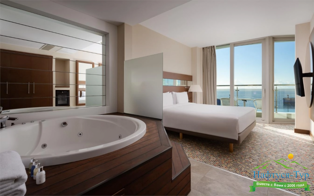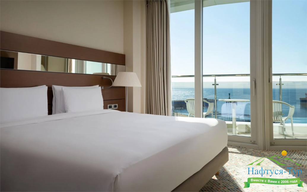 Расположение отеля уникально: с одной стороны открывается великолепный пейзаж Кавказских гор, а с другой – живописный вид на Черное море.