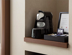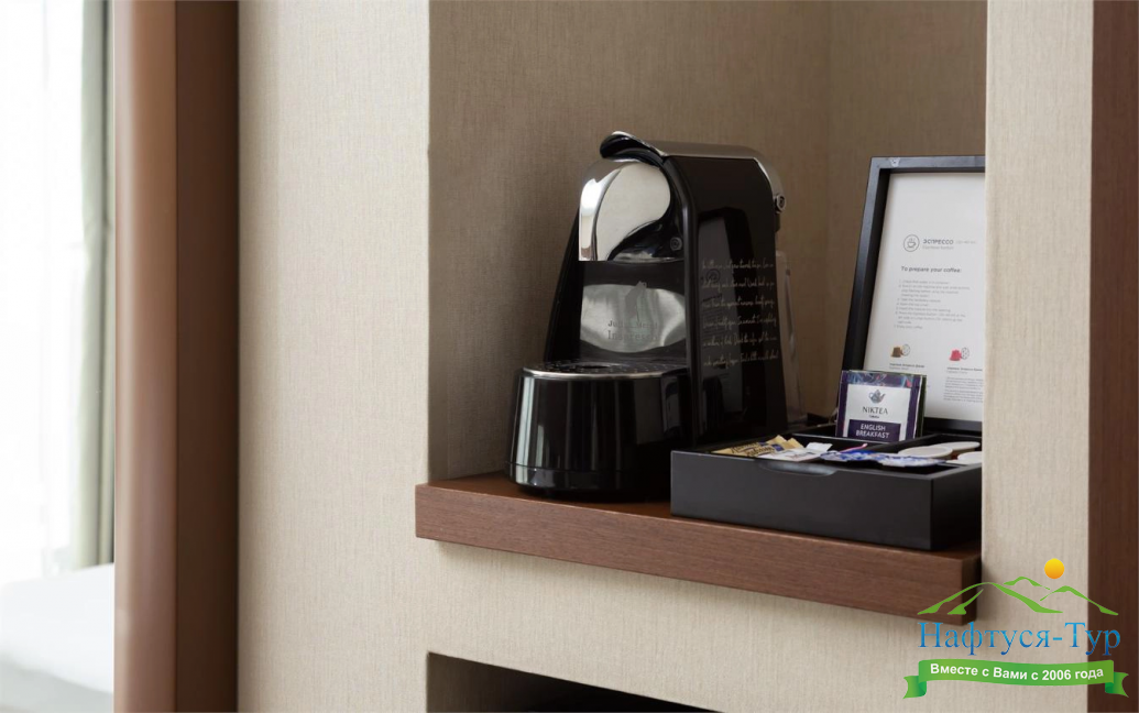 гладильная доска, кофемашина, мини-холодильник, сплит-система, телевизор, телефон, утюг, чайная станция