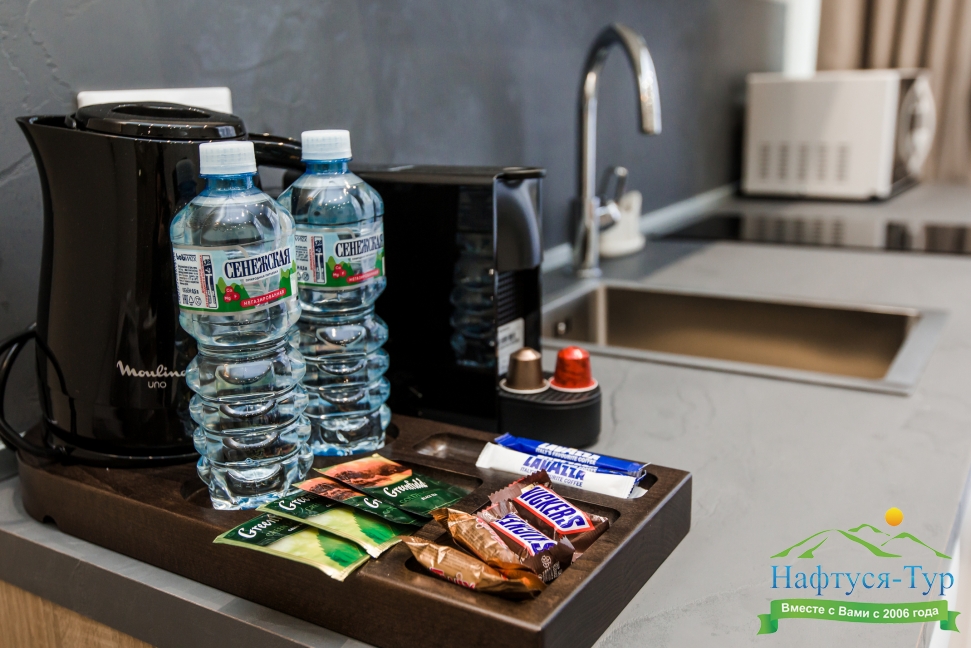 кондиционер, микроволновая печь, мини-холодильник, набор посуды, плита электрическая, сейф, телевизор ЖК, утюг, чайный набор посуды, электрочайник