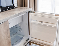 гладильная доска, кондиционер, микроволновая печь, мини-холодильник, набор посуды, плита электрическая, сейф, система общего кондиционирования, телевизор ЖК, утюг, холодильник, чайный набор посуды, электрочайник