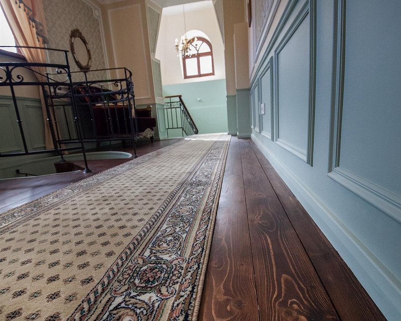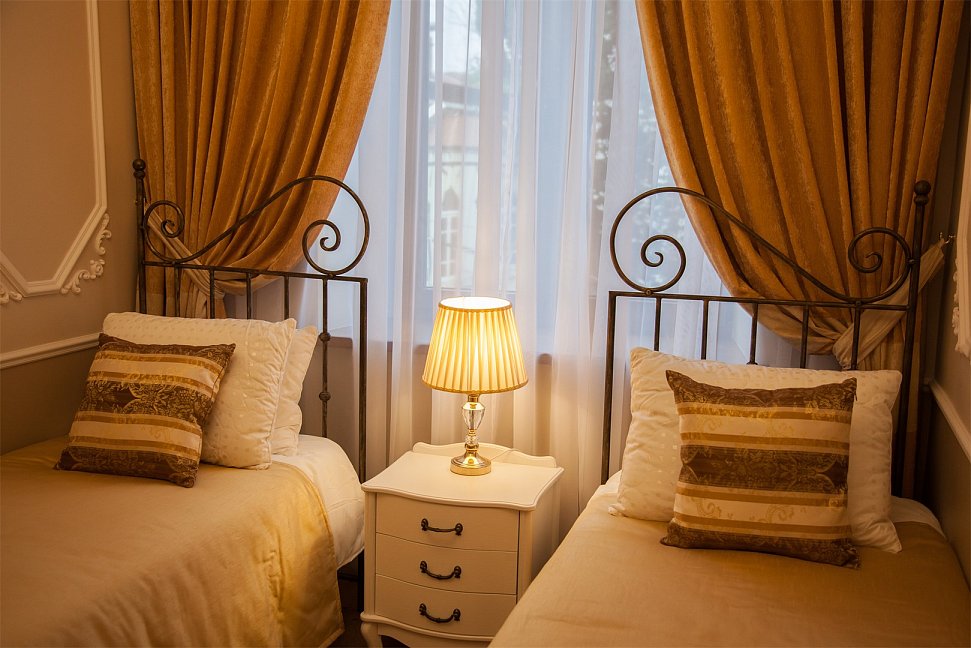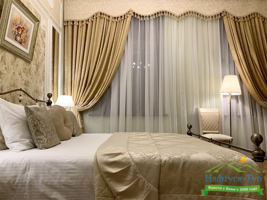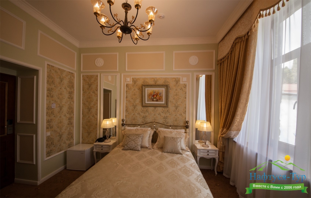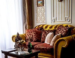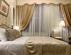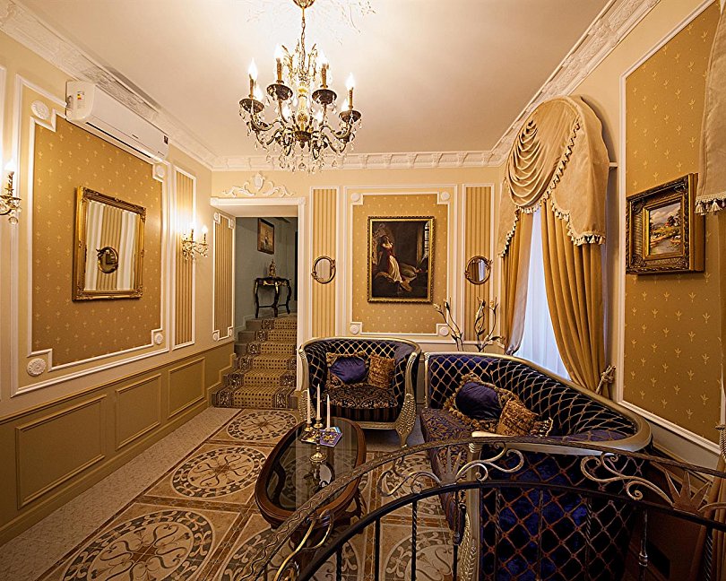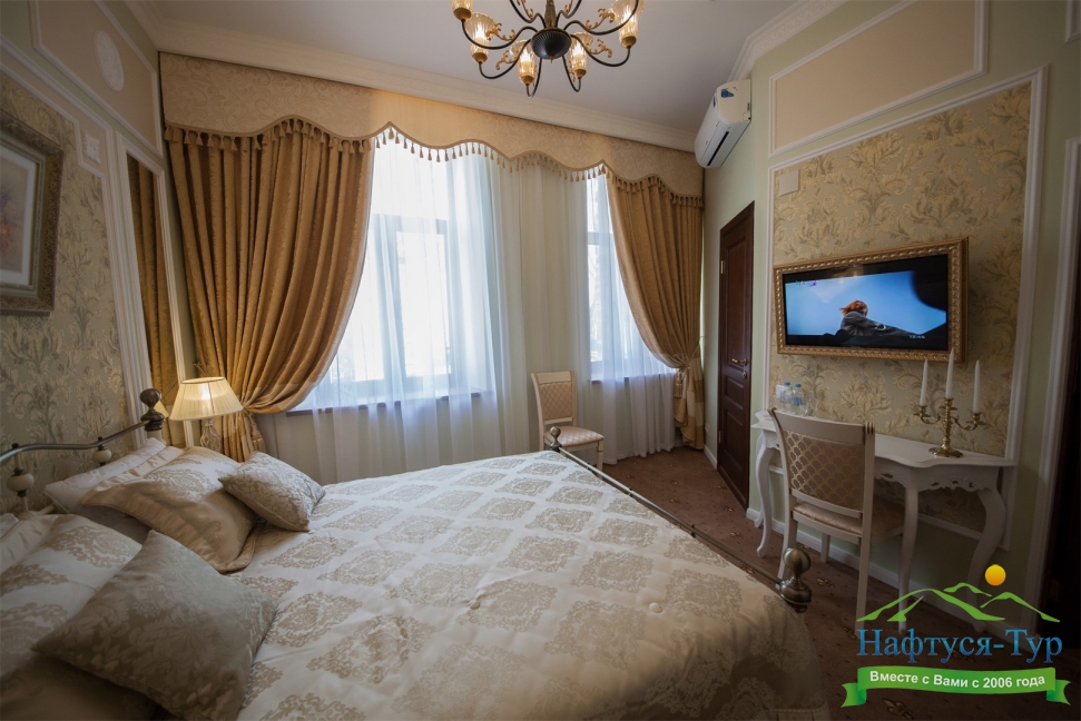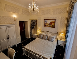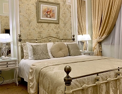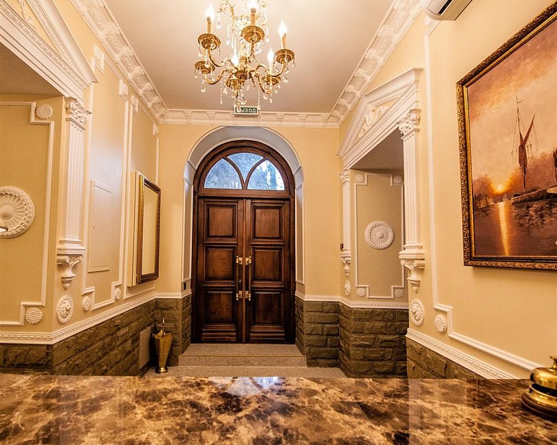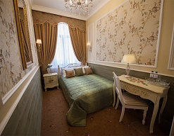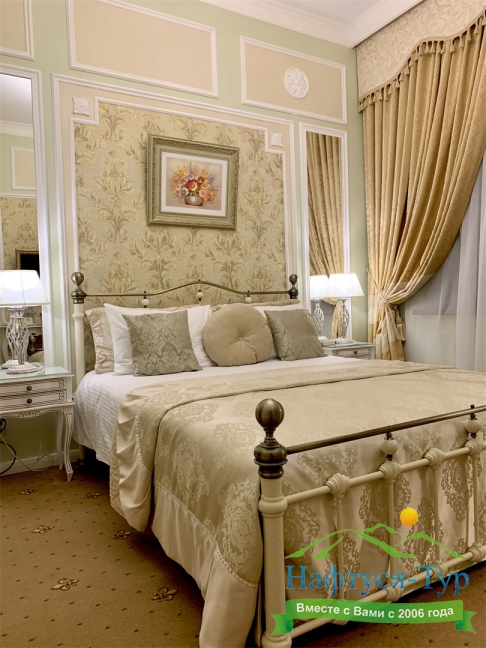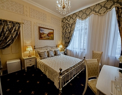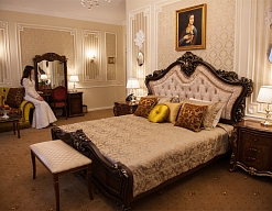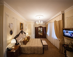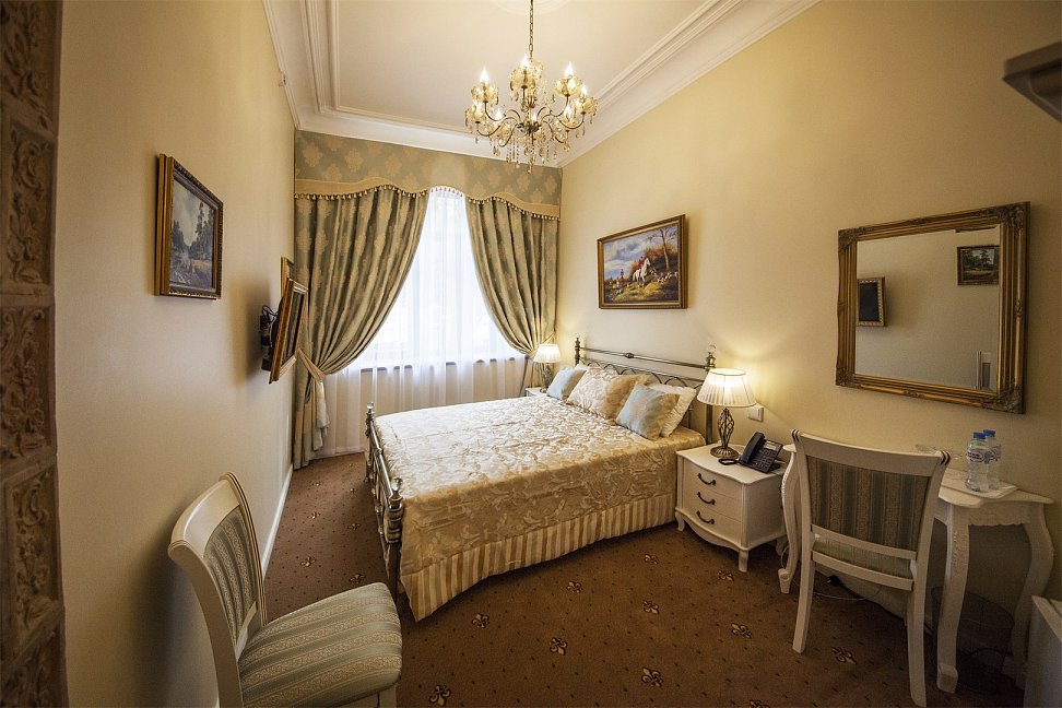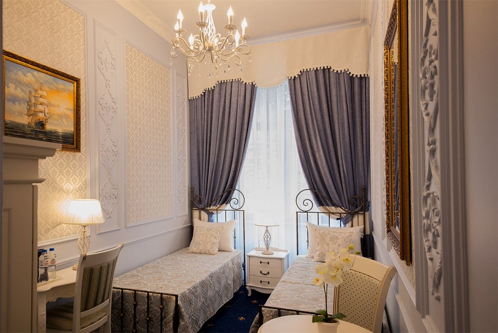 - номера отеля оформлены в индивидуальном дизайне с элементами лепнины в классическом стиле дореволюционной России