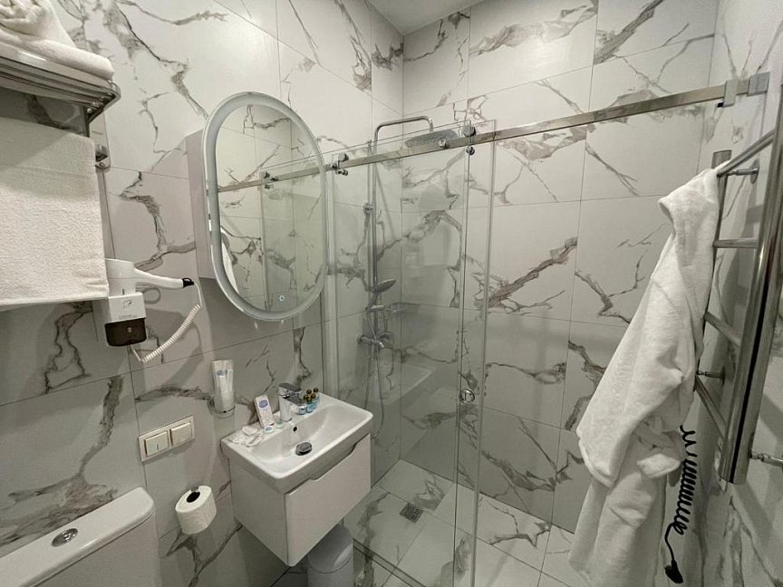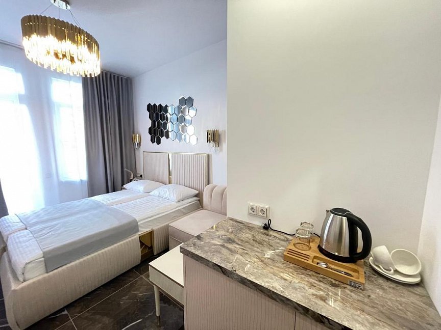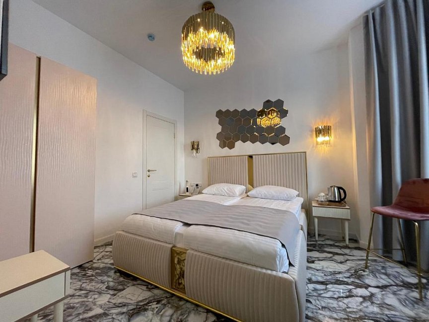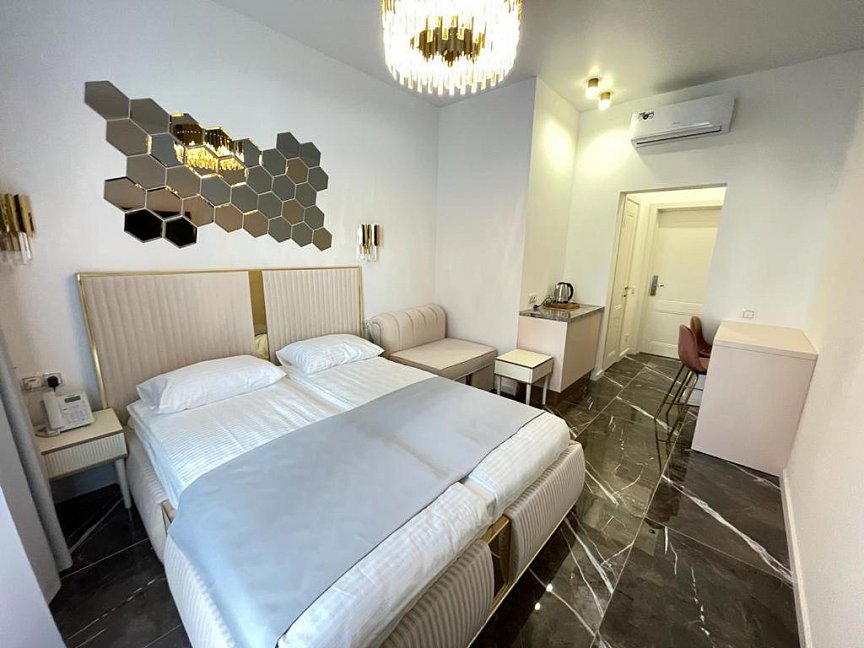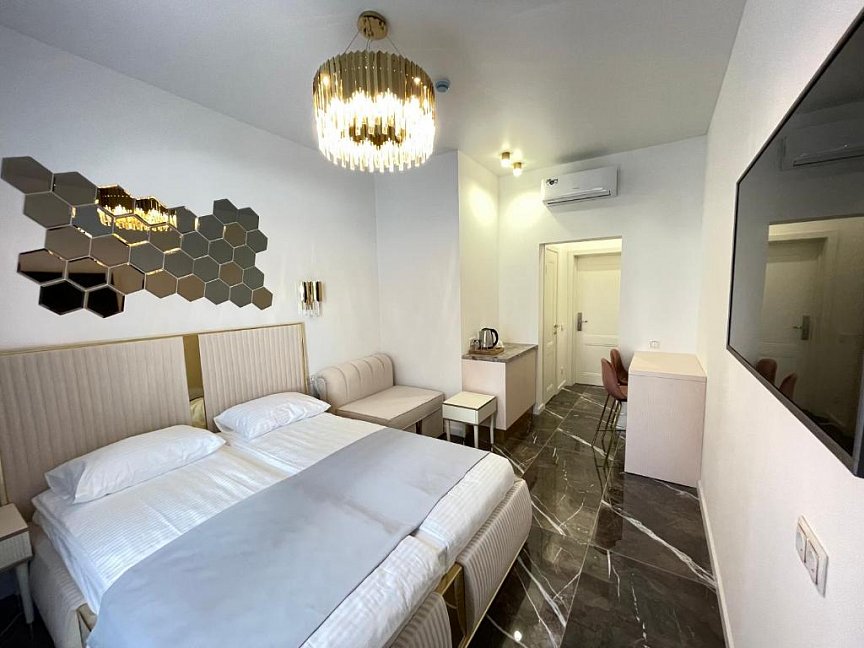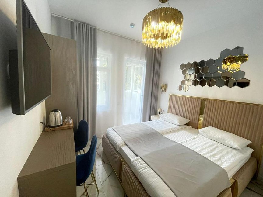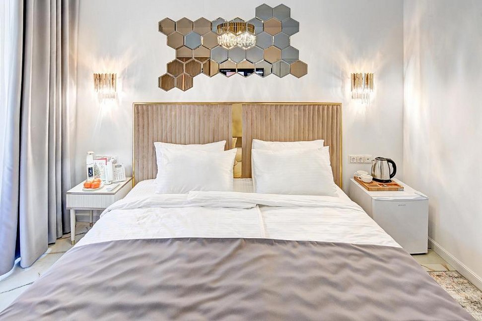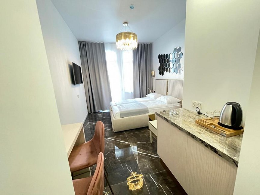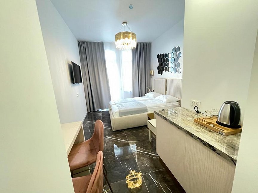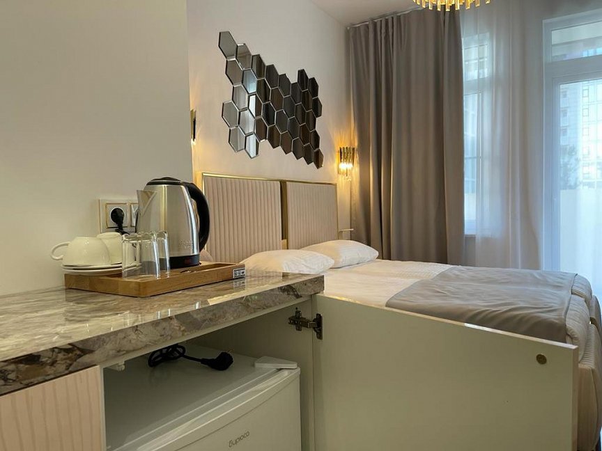 Прекрасный отель! Открылся недавно, мы, похоже, были вообще одни из первых гостей ) Номера новенькие, чистые, уютные, с необычным интерьером, есть всё необходимое, включая косметические принадлежности.