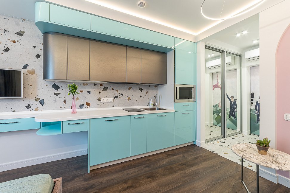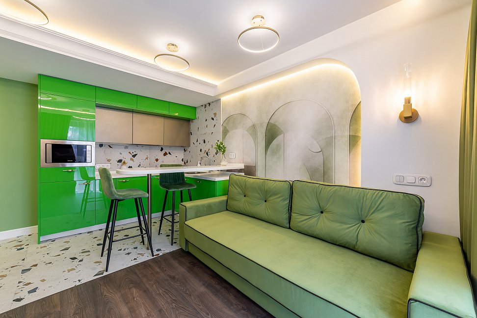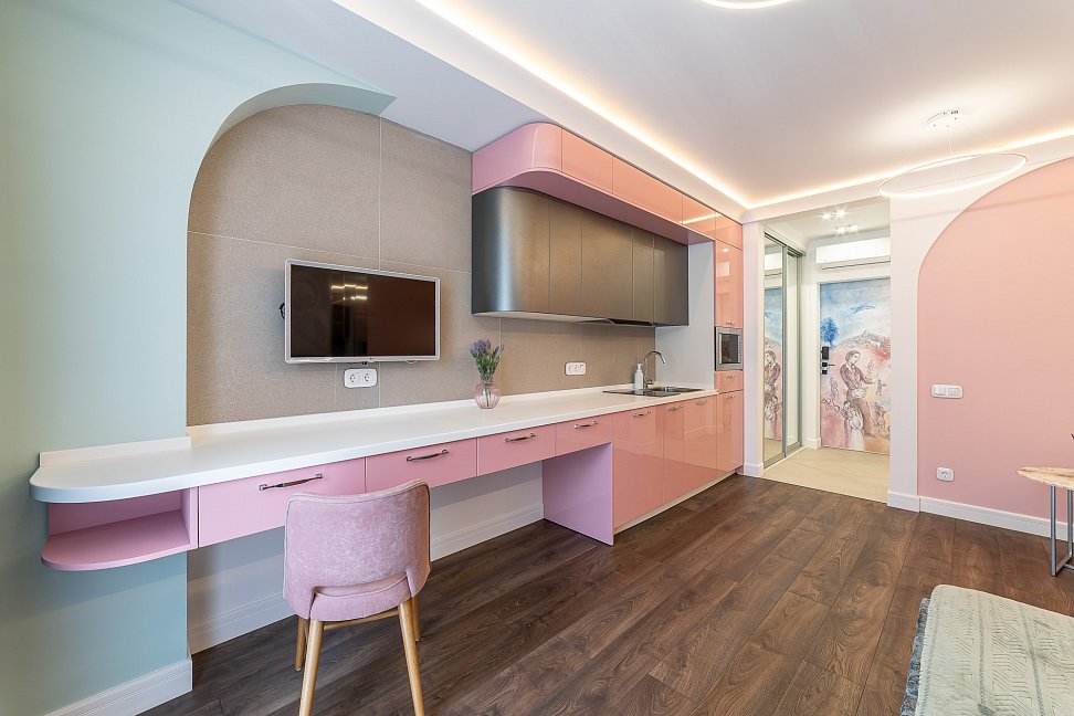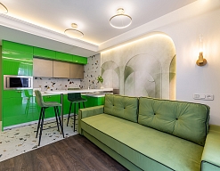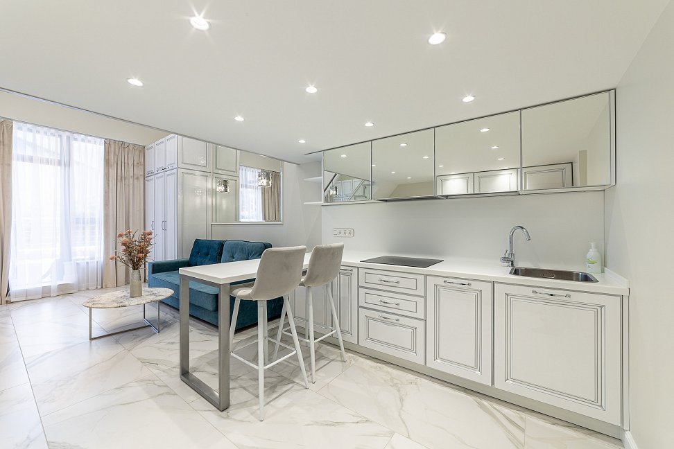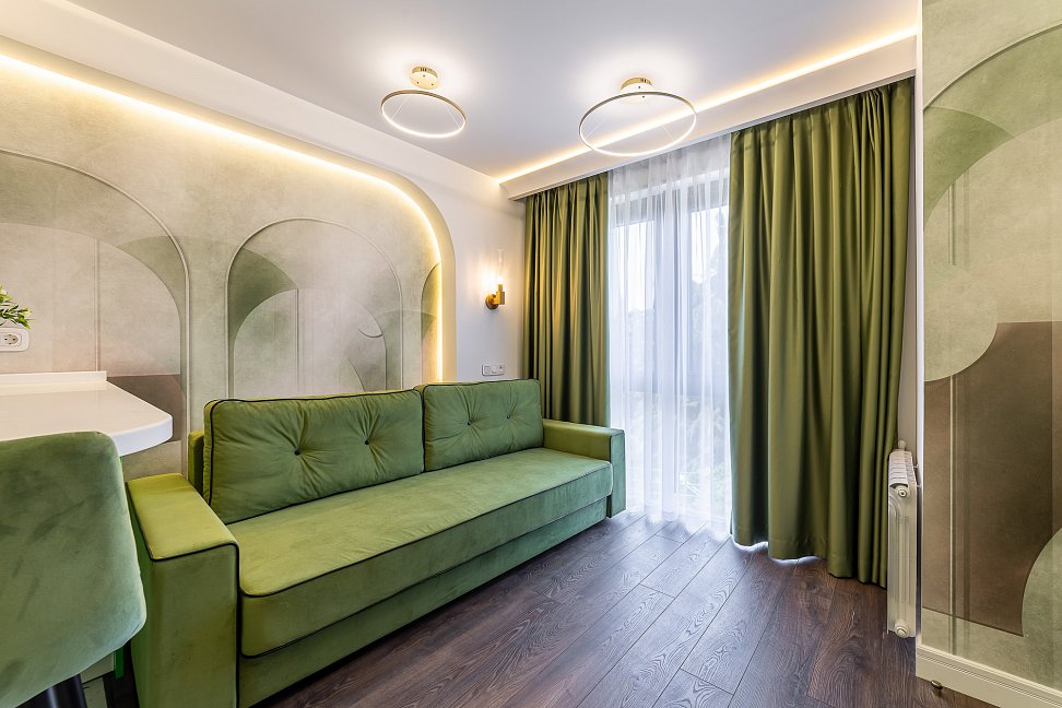 вешалка, диван раскладной, кровать двуспальная, кухонная мебель, прикроватные тумбочки, шкаф встроенный