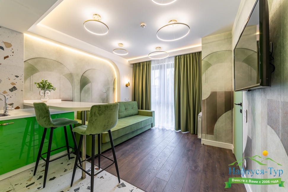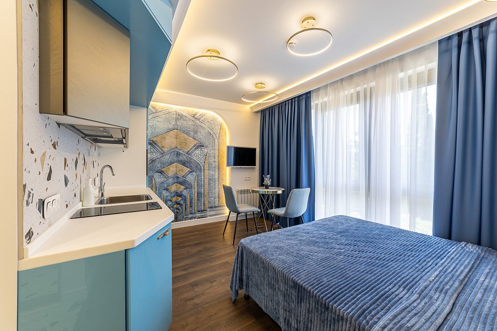 Расположение: 420 м до пляжа, 1,2 км до ж/д вокзала, 28 км до аэропорта Адлер