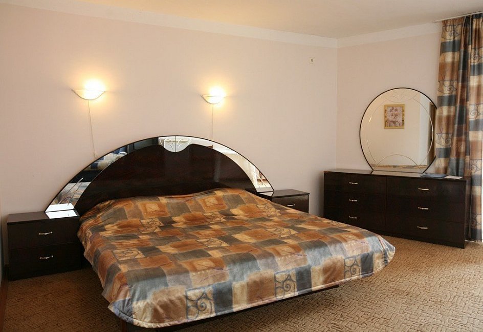 диван, зеркало, кровати односпальные /одна двуспальная кровать, прикроватные тумбочки, стол, стул, шкаф