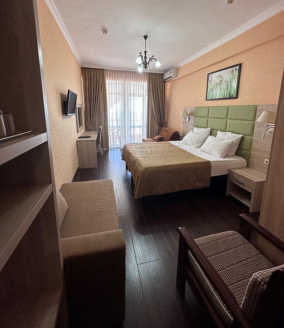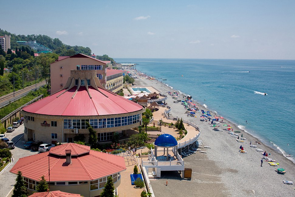 Расположение: Первая линия у моря (30 м до пляжа), 15 км до центра Сочи, 50 км до аэропорта Адлер