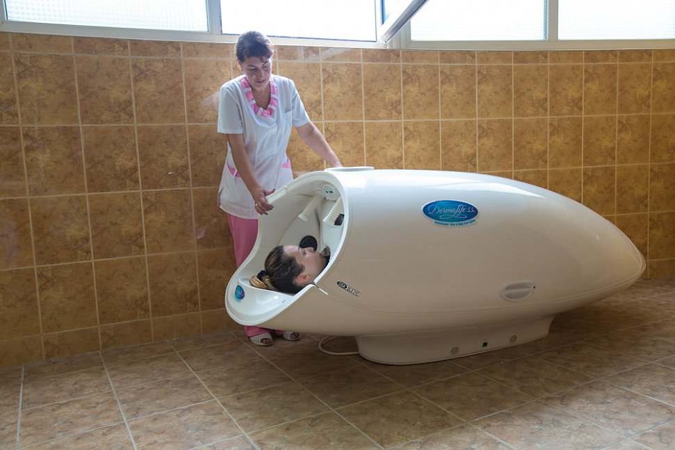 На территории лечебно-оздоровительного комплекса имеются 4 плавательных бассейна и 1 АКВАПАРК с горками: