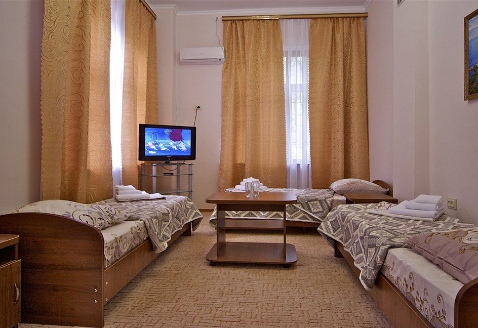 Прекрасное расположение: Пансионат находится в окружении зеленых насаждений и в нескольких минутах ходьбы от берега моря, что создает идеальные условия для уединенного и комфортного отдыха.
