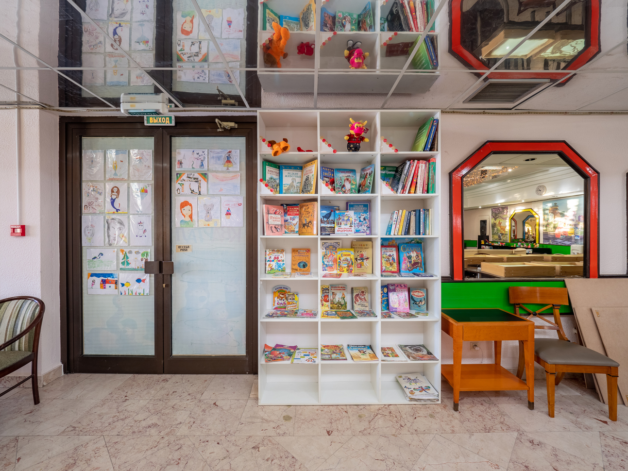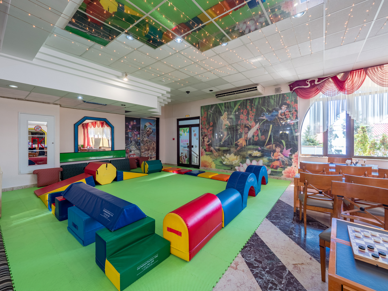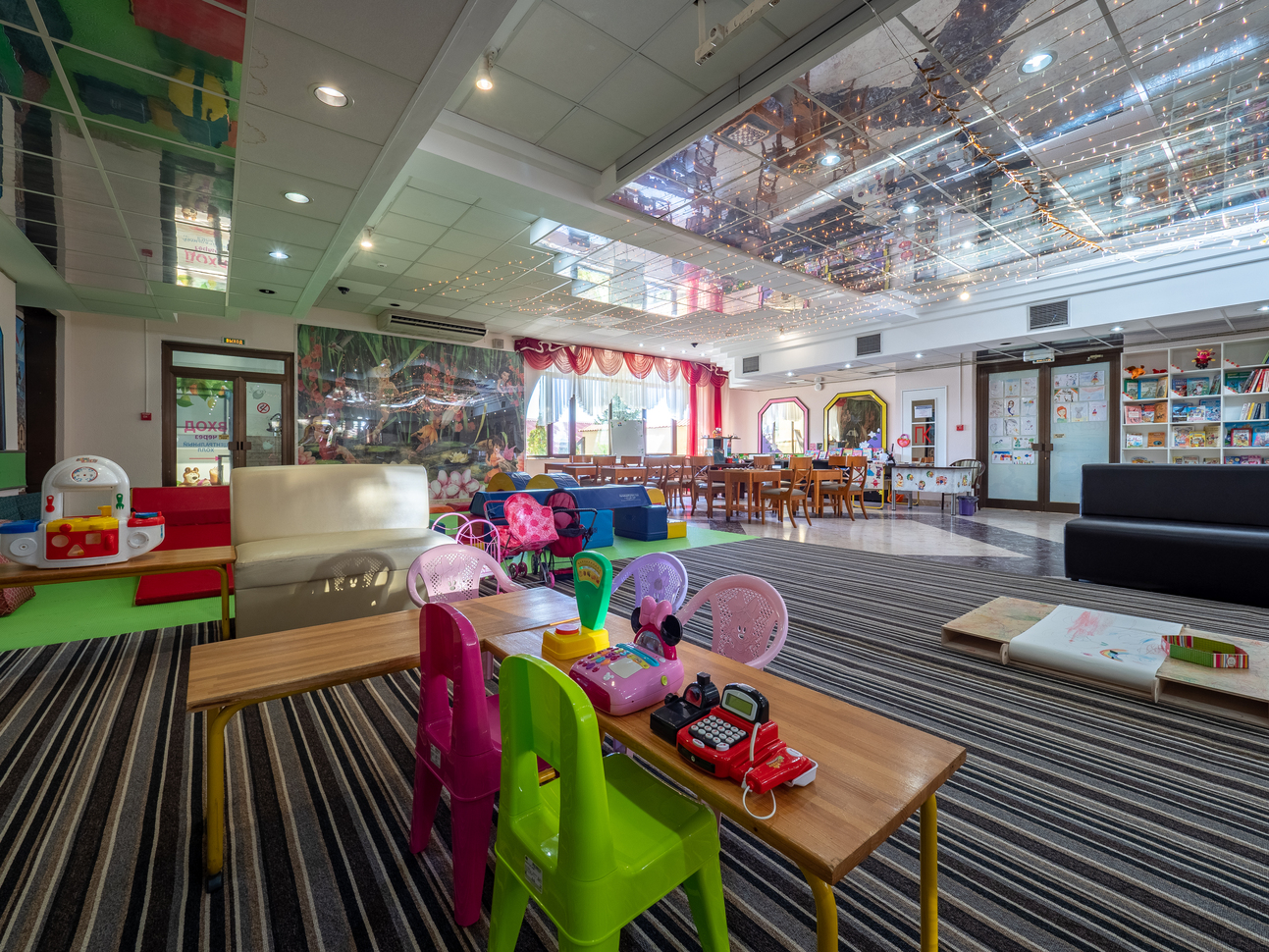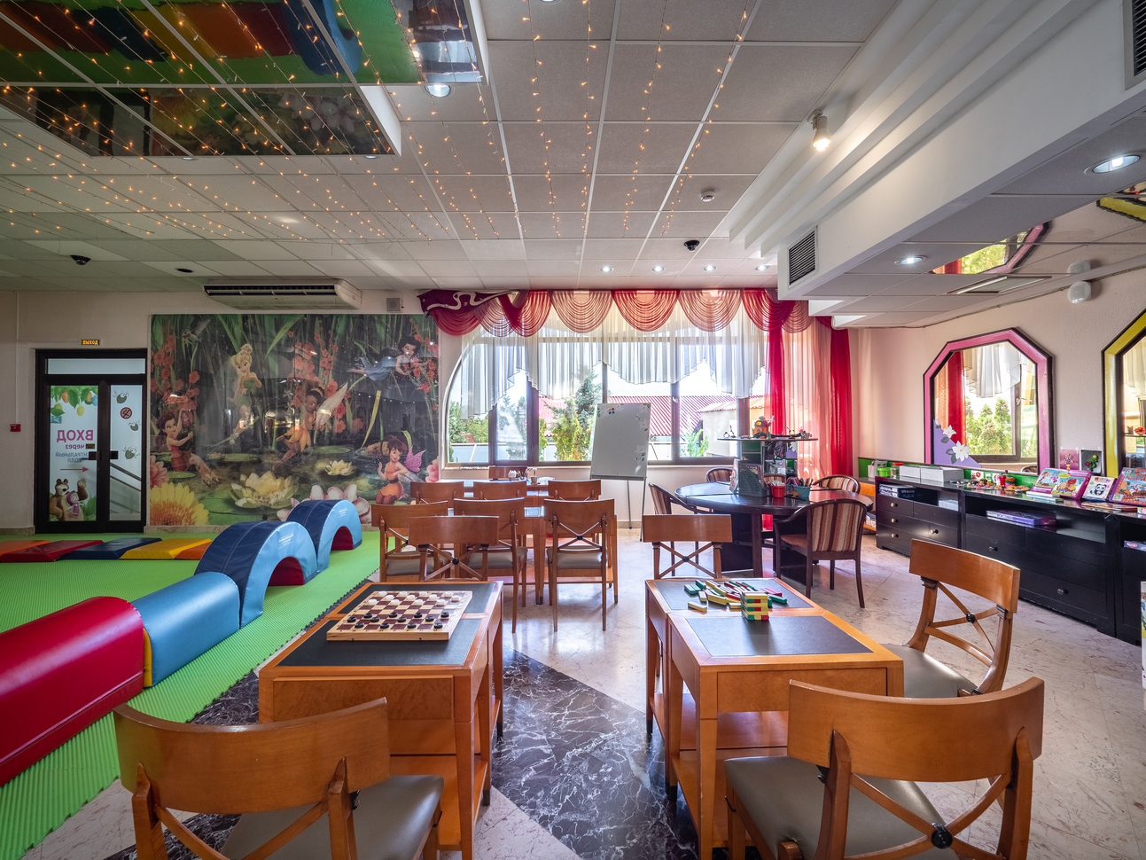 Для маленьких детей у нас есть детская комната с игрушками и книгами, где они смогут играть и общаться с другими детьми. А для подростков у нас есть специальная комната с видеоиграми, настольным футболом и другими развлечениями.