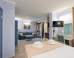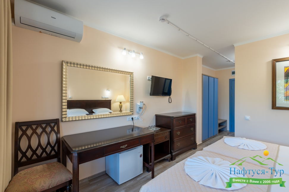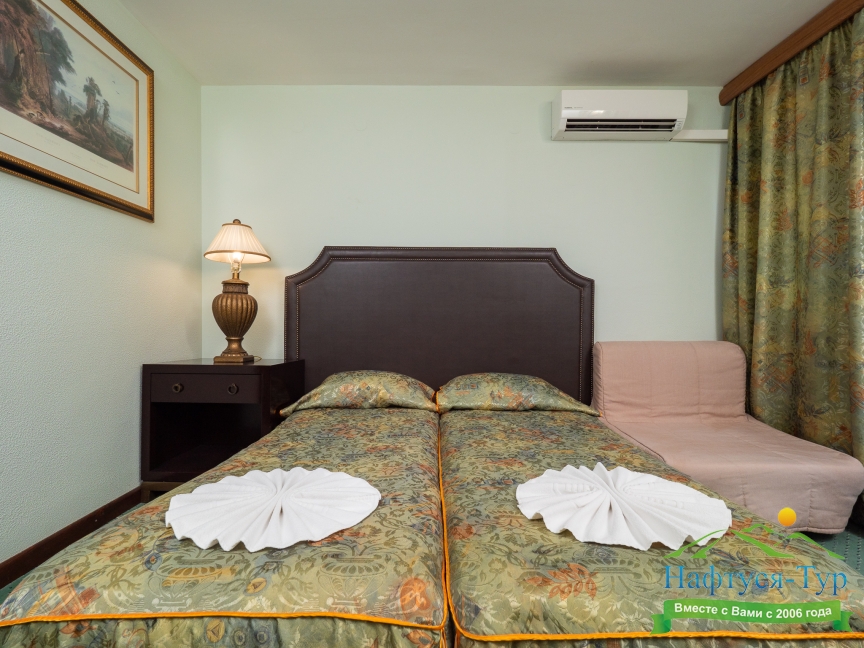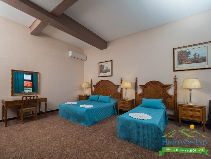 зеркало, кресло-кровать, кровати односпальные /одна двуспальная кровать, прикроватные тумбочки, столик туалетный, шкаф