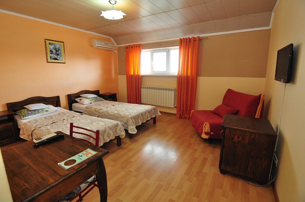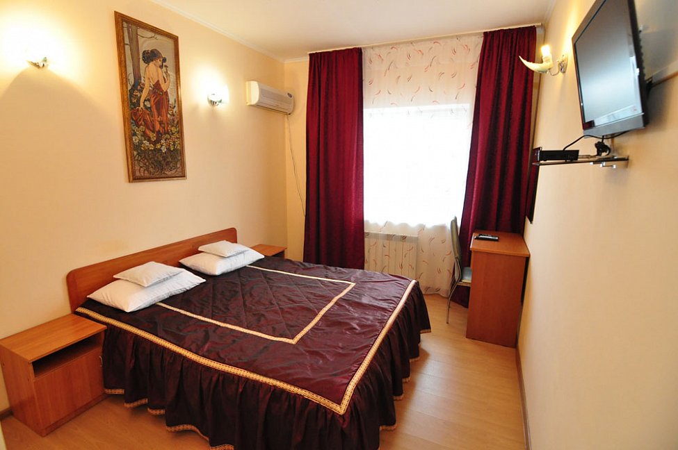 В 5-этажном здании отеля Бавария одновременно могут разместиться около 100 гостей. Номера отеля имеют разные категории, но независимо от этого, все обеспечены собственными санузлами с душем, отлично меблированы и снабжены необходимой бытовой техникой: сплит-системой, холодильником, телевизором. В каждом номере есть место для установки дополнительной детской кроватки.