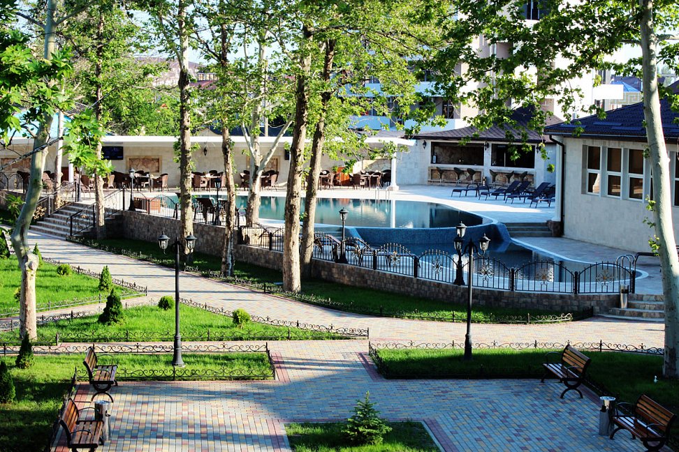 Большая территория, парк с платанами и розарием, детская площадка, бассейны (взрослый и детский), столовая, кино-конференц зал, детские развлечения – вот далеко не полный перечень того, что вы можете себе позволить в 3-х звездочном пансионате Платан Resort.
