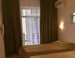 Поездом до ж/д вокзала г. Анапы, далее на маршрутном такси №120 до остановки «Микрорайон Солнечный», далее 173 м до отеля.