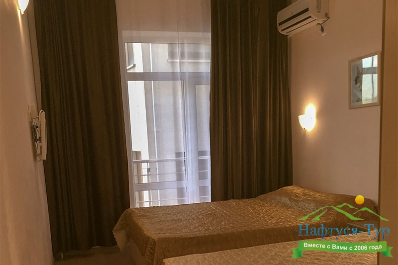 Самолетом до аэропорта г. Анапы, далее на маршрутном такси №113 до остановки «Аквапарк», далее на маршрутном такси №114 до остановки «Микрорайон Солнечный», далее 173 м до отеля.