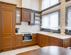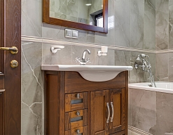 кухня, диван, зеркало, кровати односпальные /одна двуспальная кровать, прикроватные тумбочки, стол, стулья, тумба, шкаф