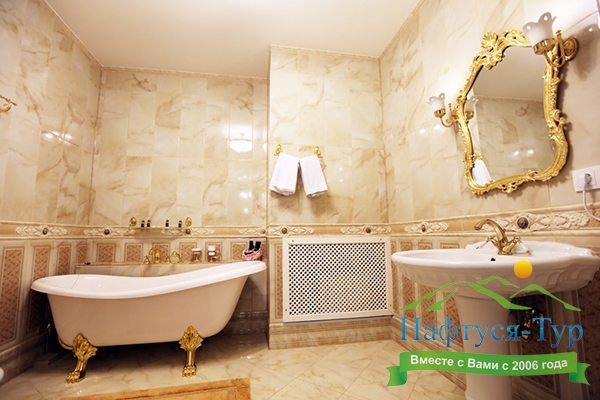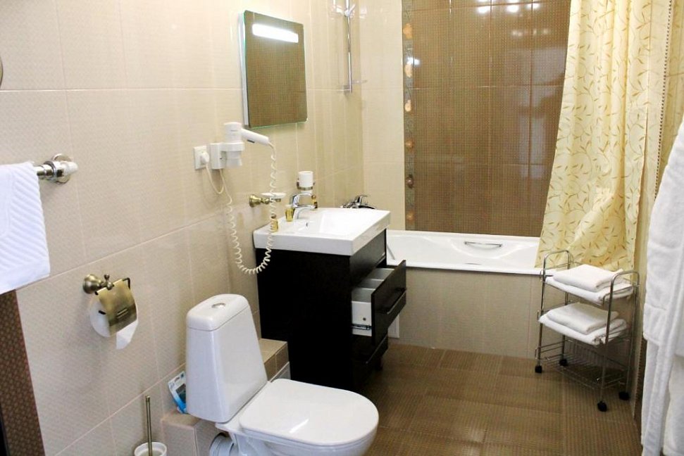 биде, с ванной, туалетные принадлежности, фен, халат