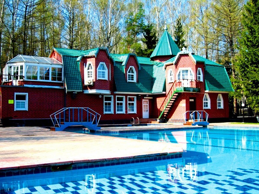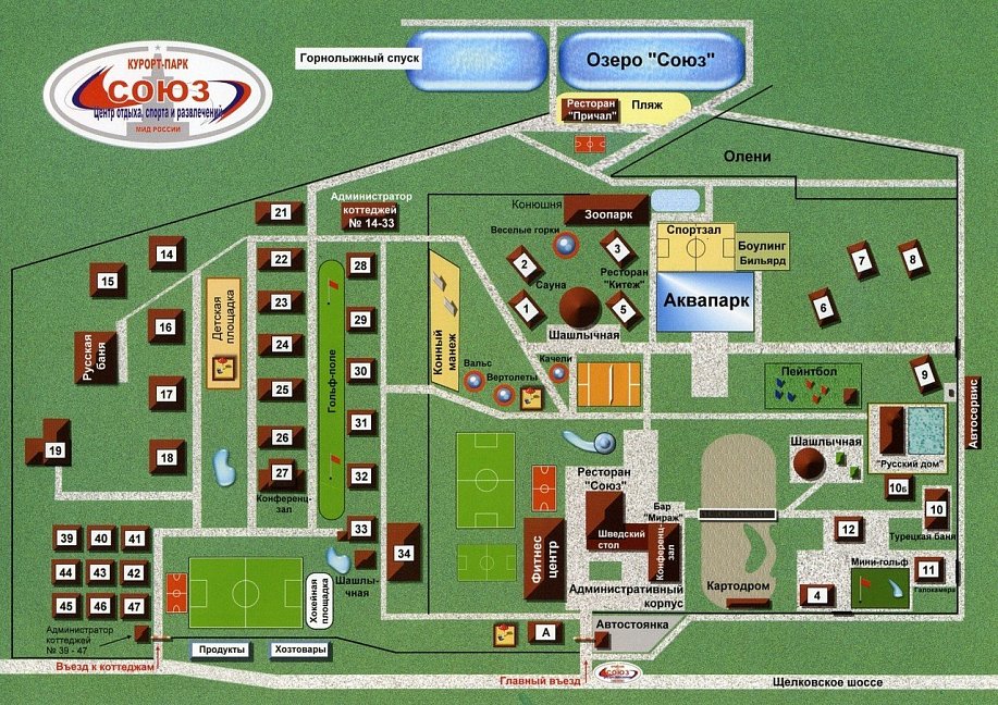 На личном транспорте по Щелковскому шоссе 23 км, в п. Юность у стеллы «Юность» поворот налево, через шлагбаум въезд в отель.