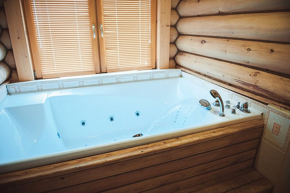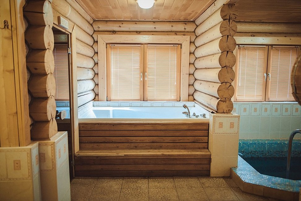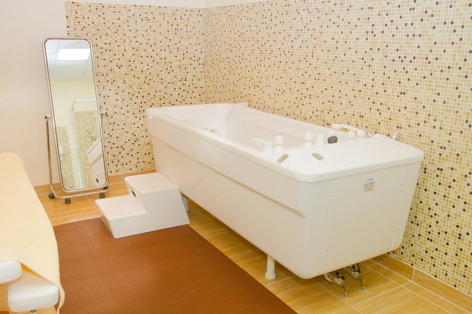с ванной, тапочки, туалетные принадлежности, фен, халат