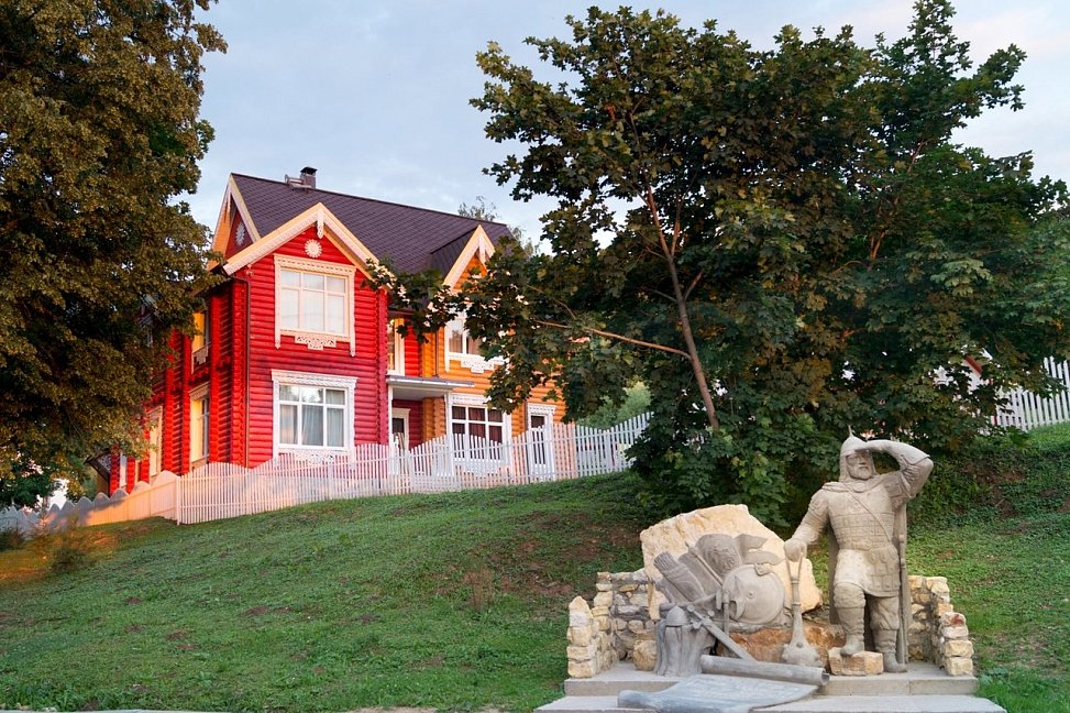 Далее следовать прямо, проезжая через деревни Вечери, Селино, Мещериново – примерно 8 км до поворота направо к загородному отелю «Царьград».