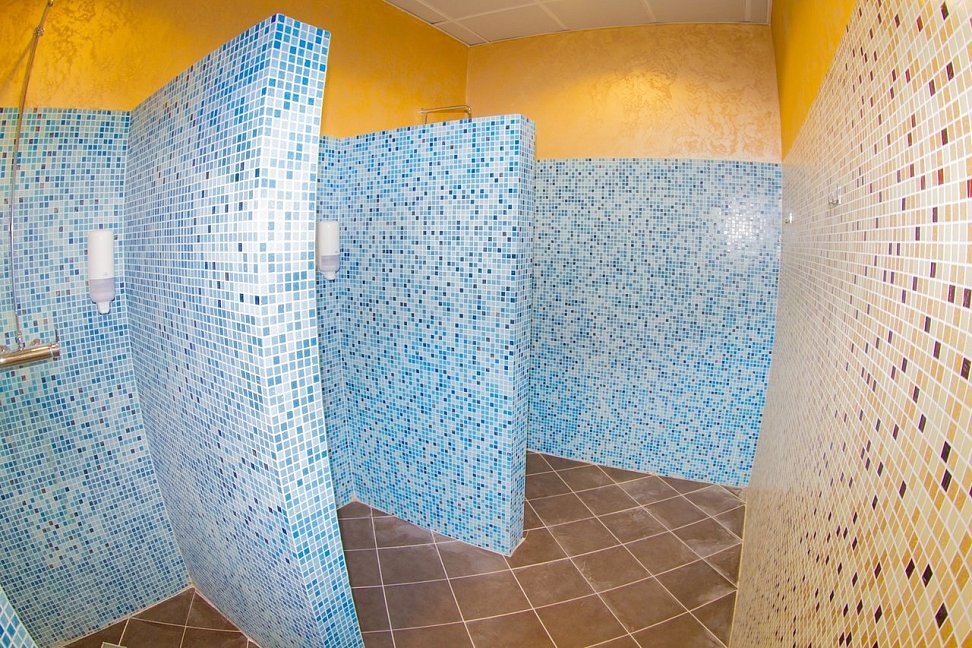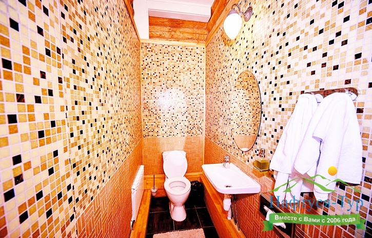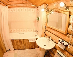 с ванной, с душевой кабиной, тапочки, туалетные принадлежности, фен, халат