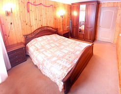 вешалка, диван раскладной, зеркало, ковровое покрытие, кровать двуспальная, прикроватные тумбочки, столик журнальный, стулья, шкаф