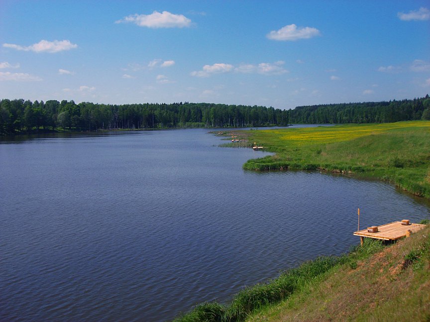В 5 метрах от гостевых домиков расположился собственный пляж с небольшим пирсом. В теплое время года на песчаном пляже можно загорать и купаться.