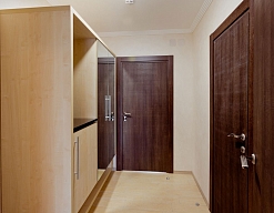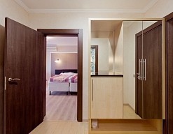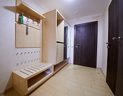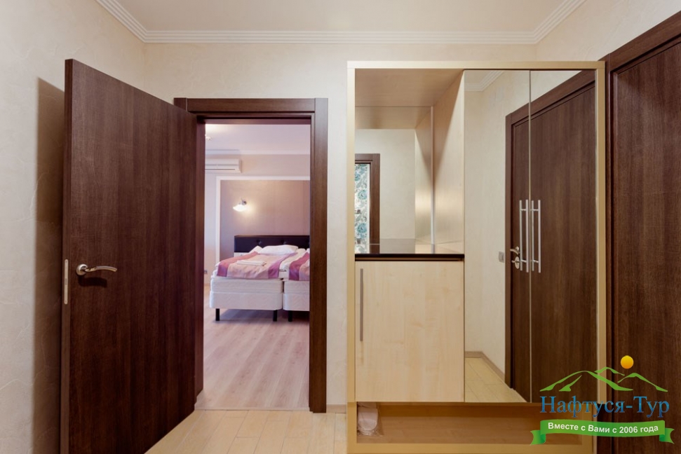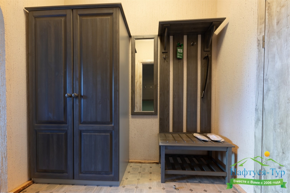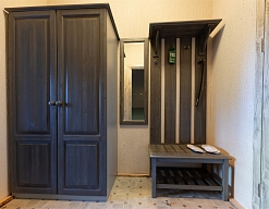 вешалка, зеркало, кровати односпальные /одна двуспальная кровать, прикроватные тумбочки, стол, стулья, шкаф