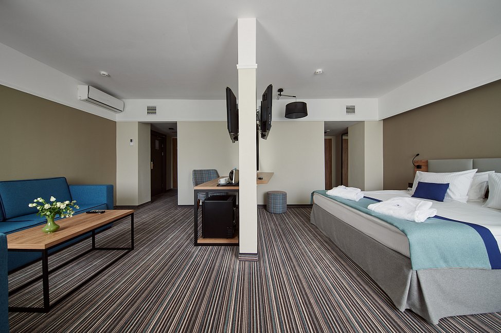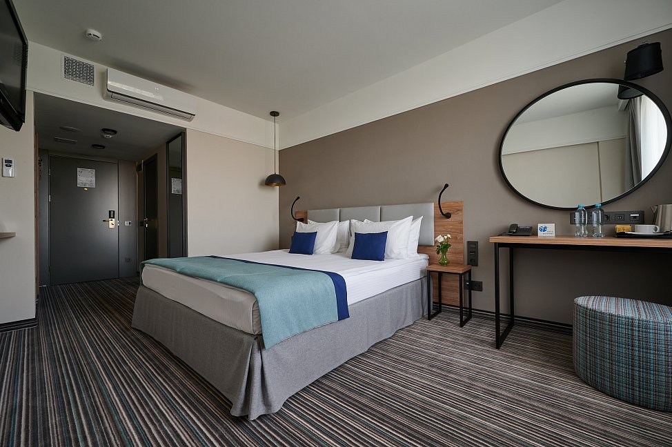 В гостинице на выбор предлагаются комфортабельные номера категорий «Стандарт», «Стандарт улучшенный», «Люкс» и «Апартаменты» – все они располагаются в одном 9-тиэтажном корпусе. В самом недорогом номере есть багажная тумба, зеркало, прикроватные тумбочки, 1- или 2-хспальные кровати, пуфик, вешалка, шкаф, рабочий стол и стул. Также в каждом номере имеются кондиционер, сейф и телевизор, подключённый к спутниковому телевидению. Также в сервис для номеров входят интернет и мини-бар. Санузел в каждом номере оборудуется ванной, феном и туалетными принадлежностями.