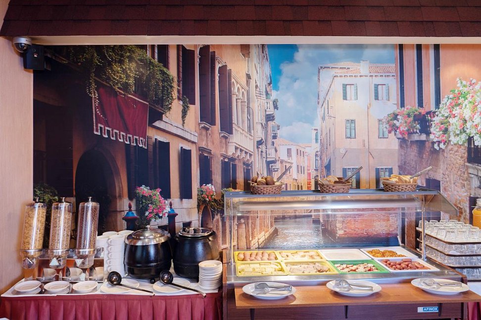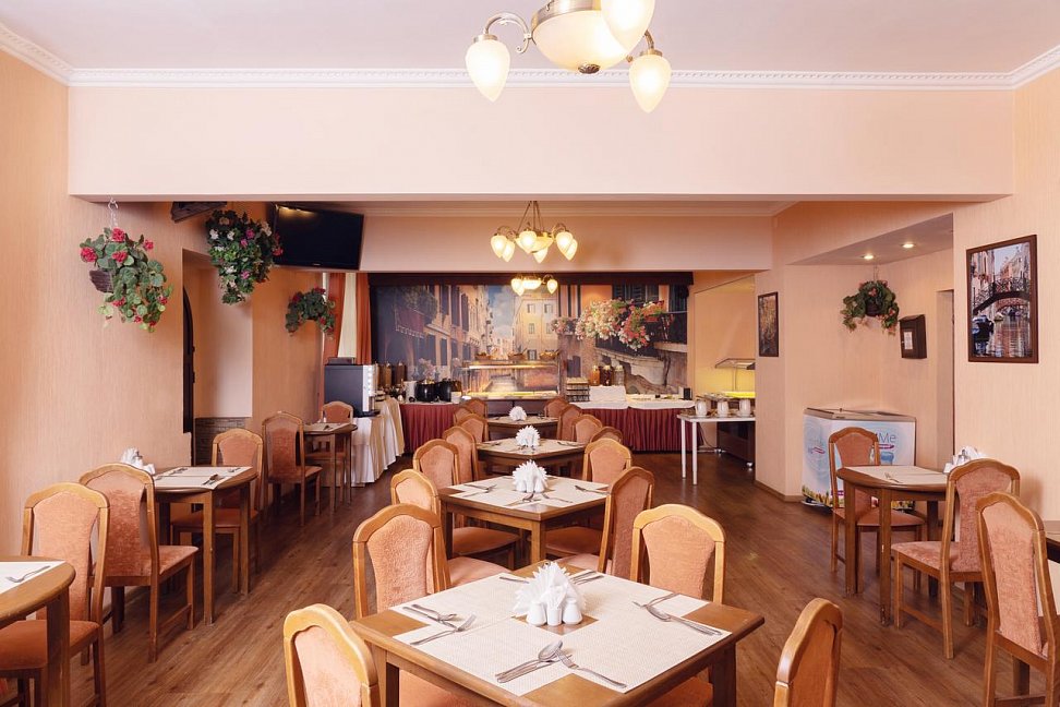 В отеле ежедневно работает ресторан с русской и европейской кухней, а также небольшой лобби-бар.
