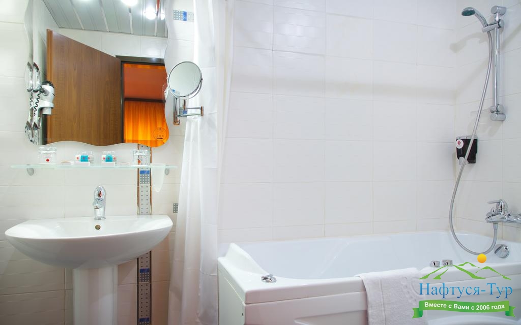 с ванной, туалетные принадлежности, фен