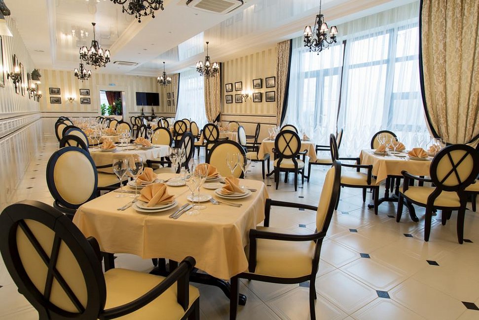 По утрам в гостиничном ресторане для постояльцев накрываются завтраки. Отель известен своим спа-услугами, в распоряжении гостей 25-ти метровый бассейн, сауна, хаммам, фито-бар, также доступен комплекс спа-процедур – обертывания, пилинг, стоун и тайский массаж. Для любителей активного отдыха на территории оборудован тренажерный зал, есть футбольное поле, пейнтбол, прокат квадроциклов, велосипедов, а зимой – коньков и снегоходов. Отдыхающим предоставляются услуги бытовых служб, беспроводной интернет, охраняемая автостоянка. Бизнес клиенты могут провести конференции, мероприятия, семинары в двух оснащенных конференц-залах. Для детей организована игровая площадка и работает детский клуб, регулярно устраиваются детские дискотеки, юных гостей развлекают аниматоры. Малышам предоставляются кроватки-манежи и стульчики для кормления.