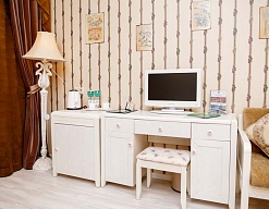 кровать двуспальная, набор мягкой мебели, прикроватные тумбочки, стол, стул, шкаф
